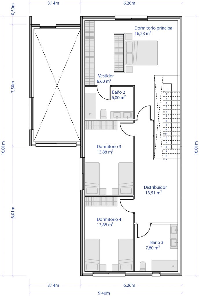 Dormitorio 3-4: 13,88m